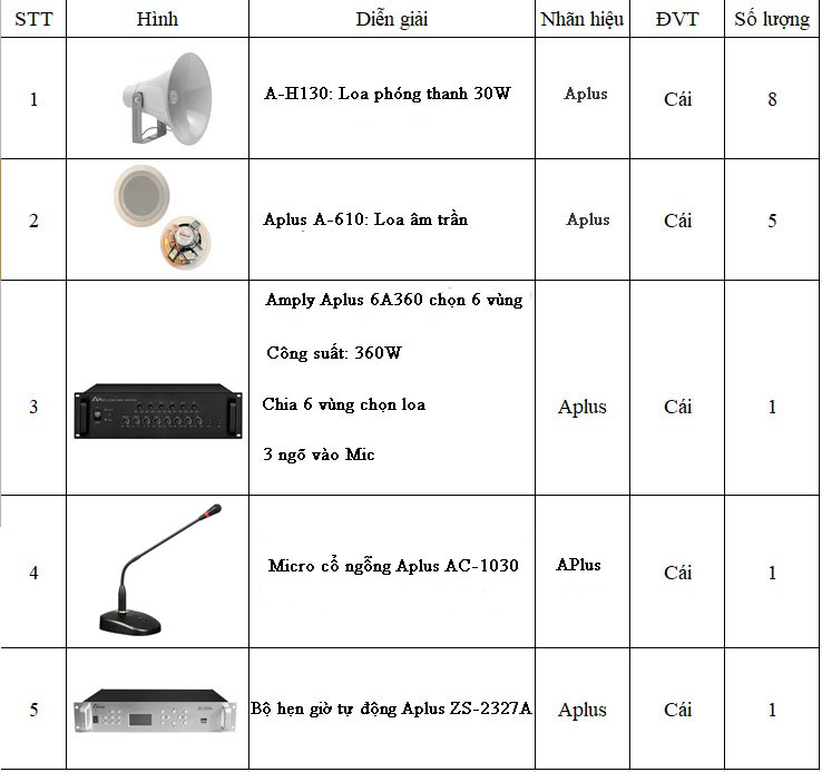 Chi tiết từng sản phẩm trong hệ thống âm thanh thông báo 6 vùng chọn